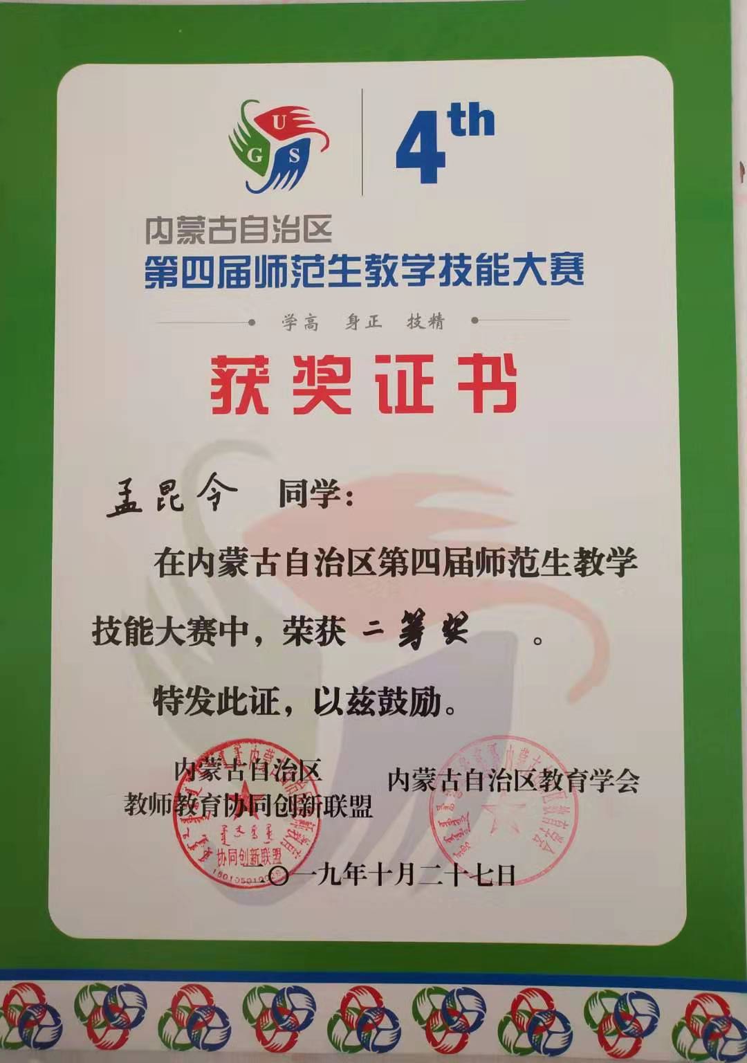 经过几个环节的激烈比拼,开元官网取得优异的成绩,荣获ky开元集团优秀指导教师的有毕力格图老师、乌日柴胡老师、徐俊文老师、郭芳老师;尼日嘎拉同学获得数学与应用数学(蒙古语)组一等奖,哈布日同学获得数学与应用数学(蒙古语)组二等奖,孟昆令同学获得数学与应用数学(汉语)组二等奖,王亚菲同学获得数学与应用数学(汉语)组优秀奖。