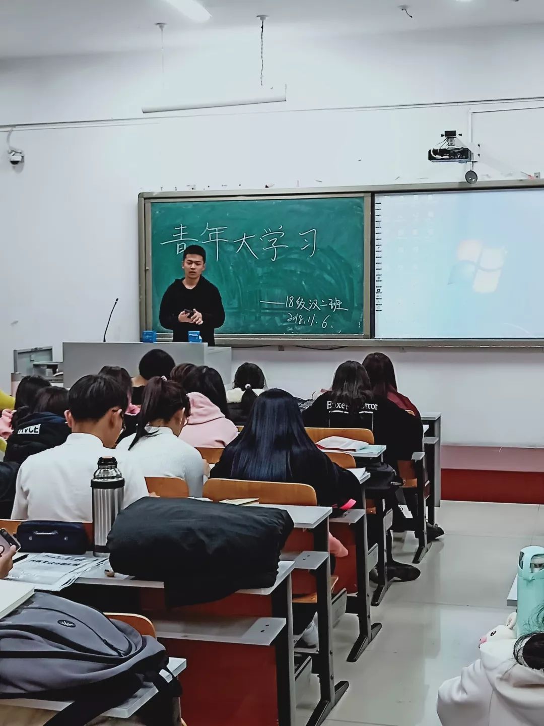 各团支部通过观看视频进行学习