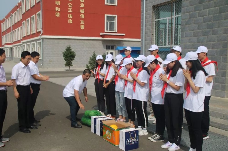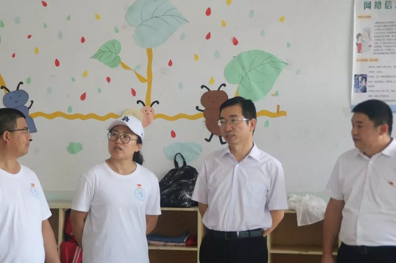 2019年7月20日,ky开元集团领导为参加“三下乡”社会实践的志愿者们带来了牛奶、水果等慰问品,并参观了志愿者工作生活环境,与带队老师深入交流志愿者工作和生活的具体内容及安排并与小学生进行了亲切的交谈。