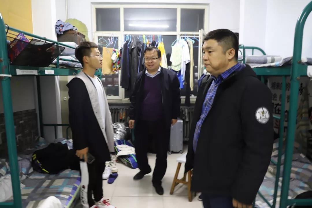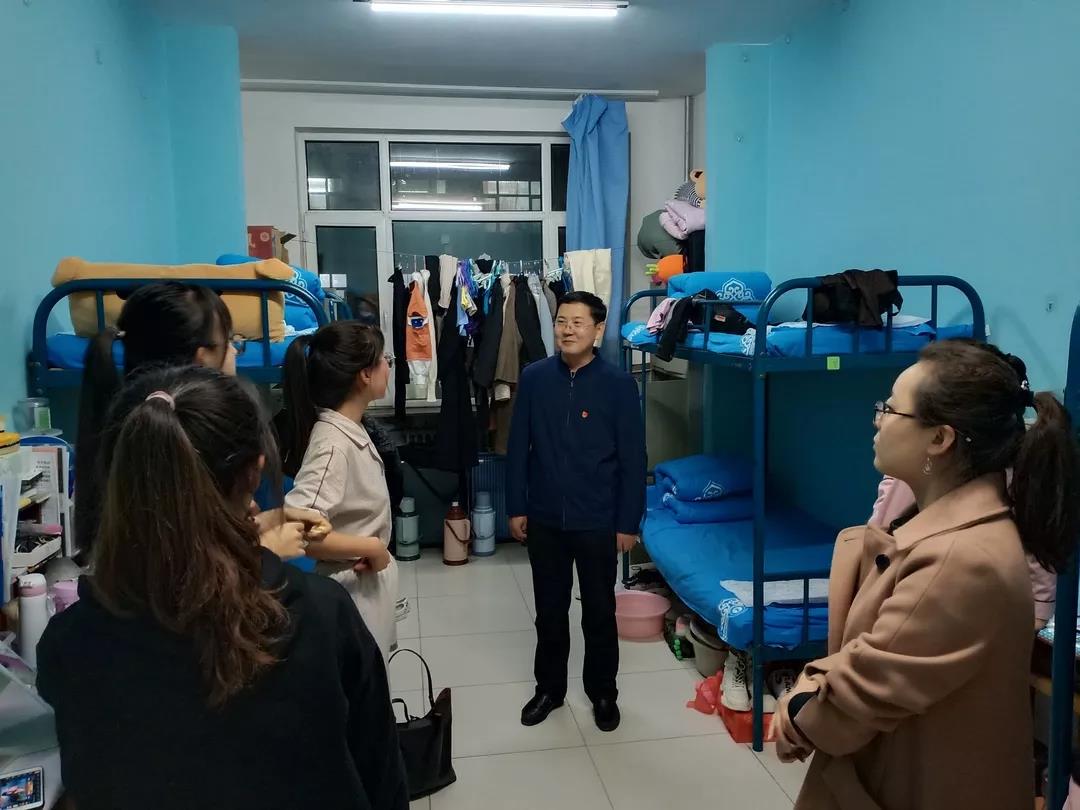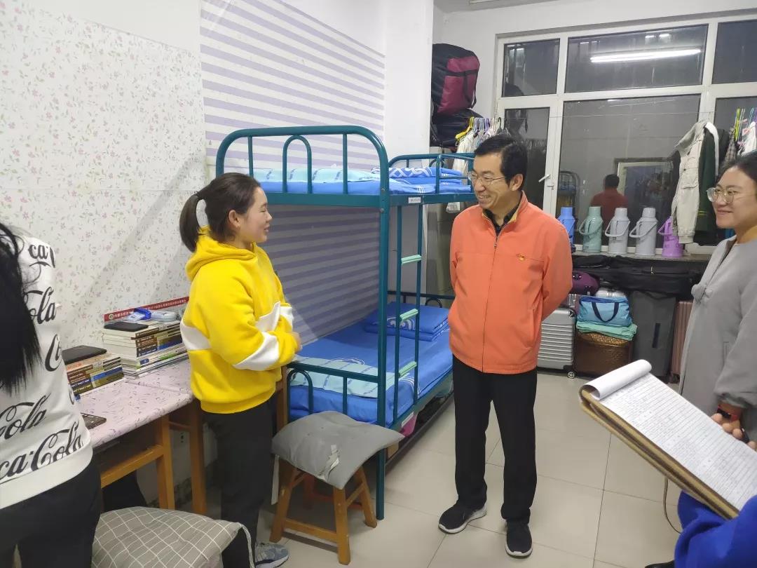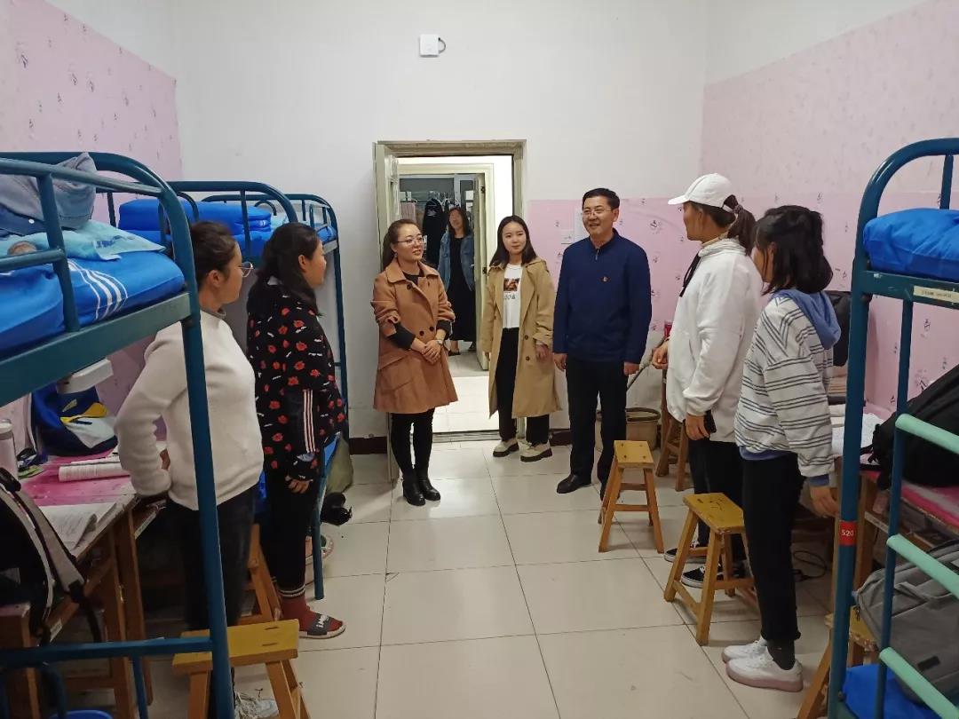 2019年11月4日,ky开元集团党总支书记扎其劳老师、院长刘官厅老师、党总支副书记、副院长季建光老师、副院长包霞老师、副院长李联合老师、学生辅导员李帅老师、刘沙沙老师来到学生宿舍进行安全卫生检查,亲切询问同学们生活、学习等情况。