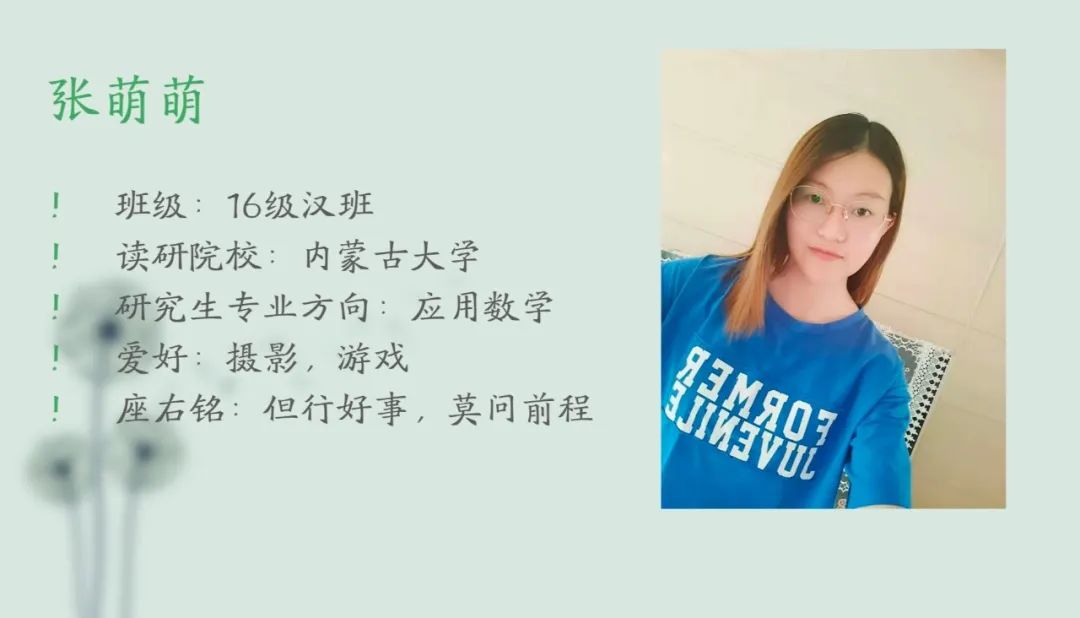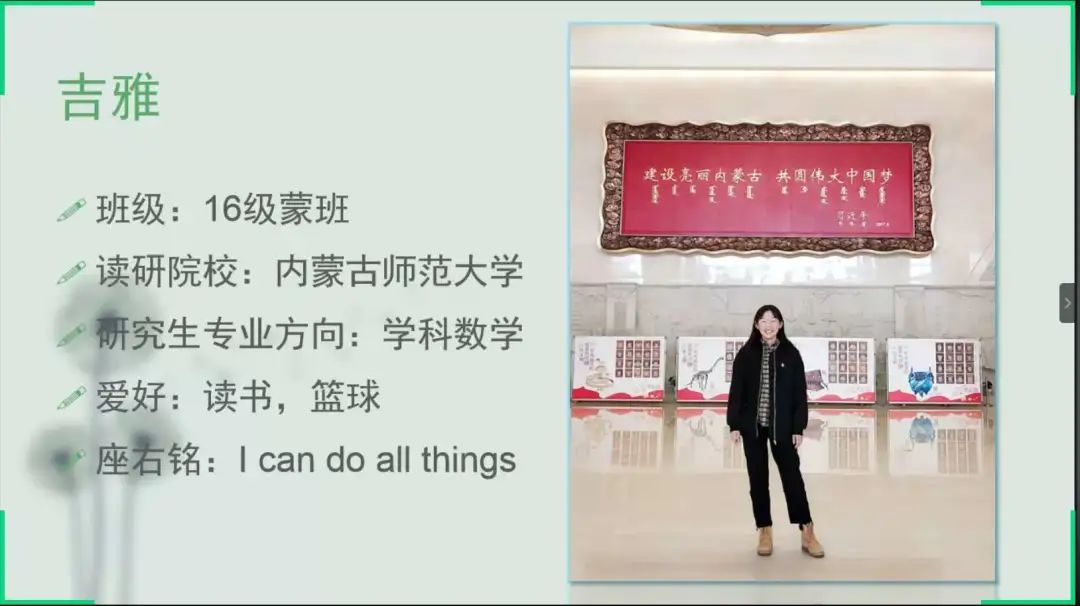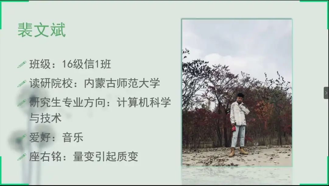 为树立优良学风,同时给有考研意向的同学们提供一个可以获取更多考研信息的机会,2020年7月11日下午,ky开元集团利用腾讯会议平台举办了考研经验交流会,此次交流会邀请到了开元官网部分16级考研成功的学子——赵小红、贺婷婷、吉雅、裴文斌、朱慧敏、张萌萌、赵雪梅、尼日嘎拉、韩磊、刘慧、冯晶。本次考研经验交流会由17级信息一班贾宇婧主持,开元官网各班同学积极参加了本次交流会。