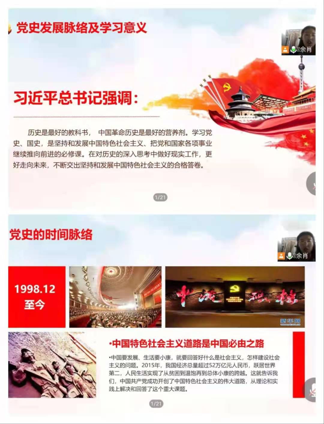 “学习党史”主题团日活动在线上举行。同学们观看了视频“重温党史”,谈了谈自己的想法,对党的历史有了新的认识。