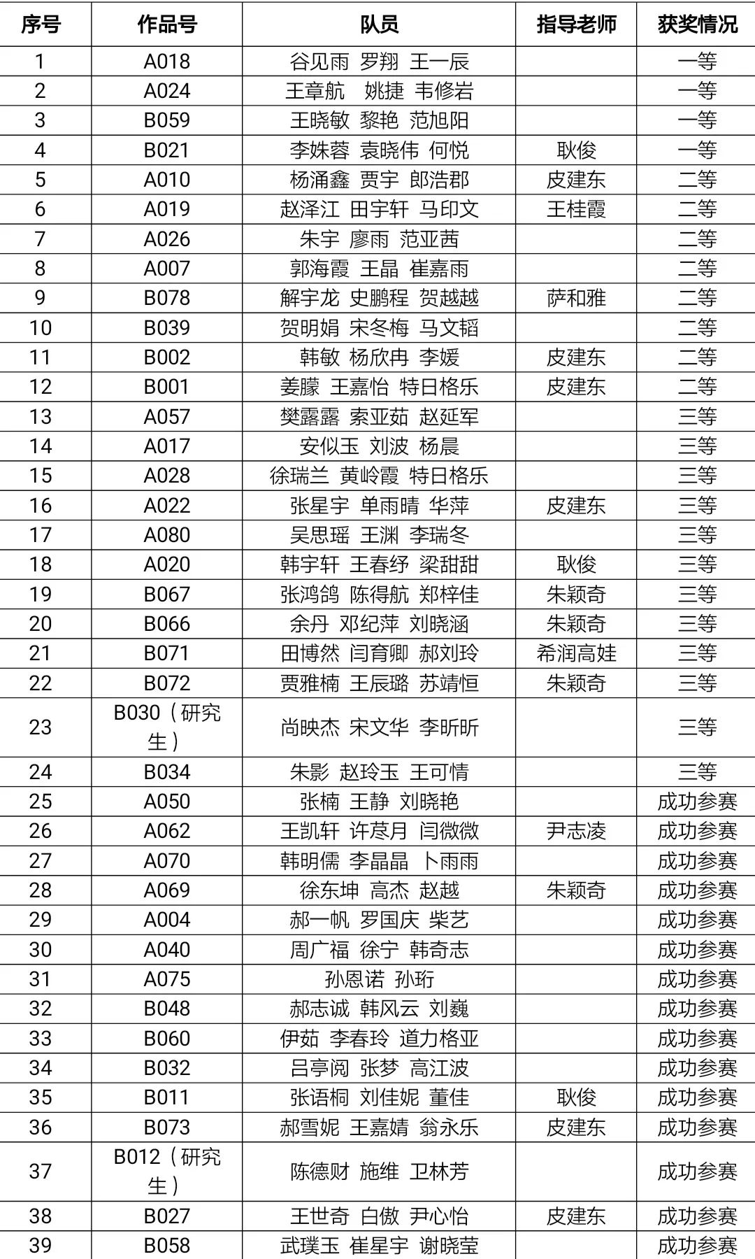 ky开元集团第四届数学建模竞赛于2021年5月28日至5月31日举行,共有83支队伍报名参加,赛后共有47支队伍提交了论文。经过评委组的认真评阅,评出一等奖4组,二等奖8组,三等奖12组,成功参赛奖15组。具体名单如下:
