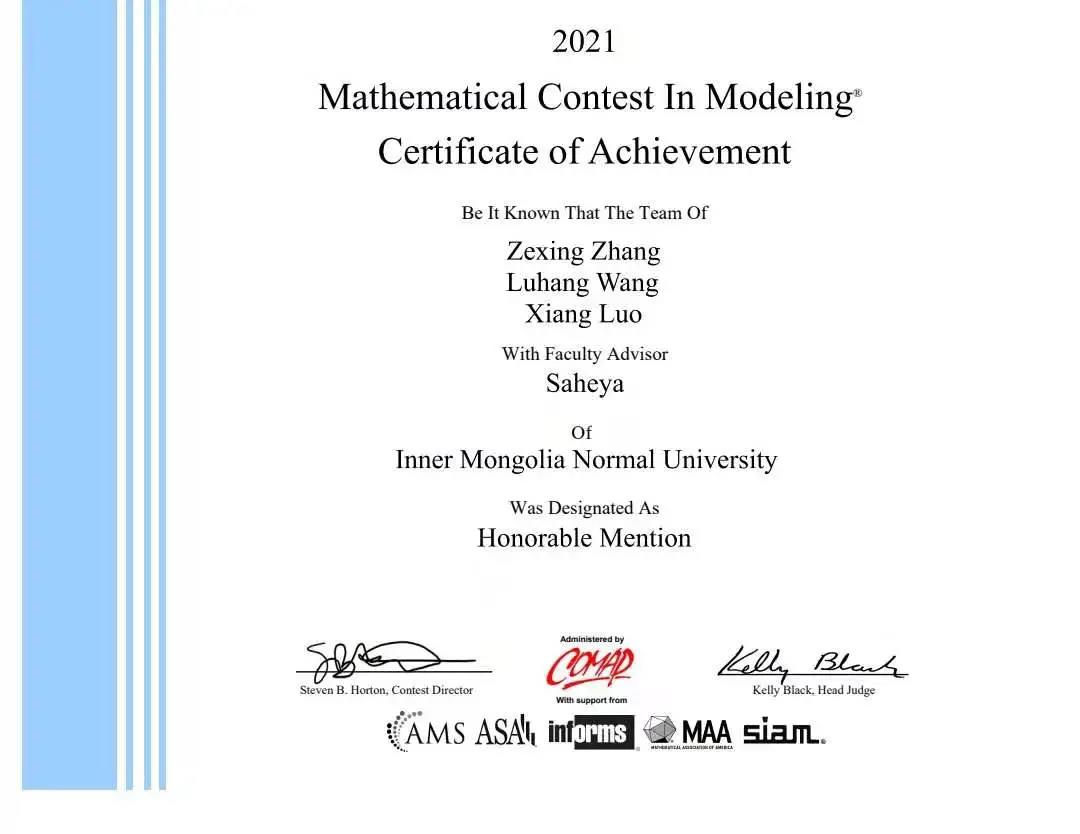 在2021美国大学生数学建模竞赛中,开元官网王路航、罗翔、张泽兴取得二等奖!