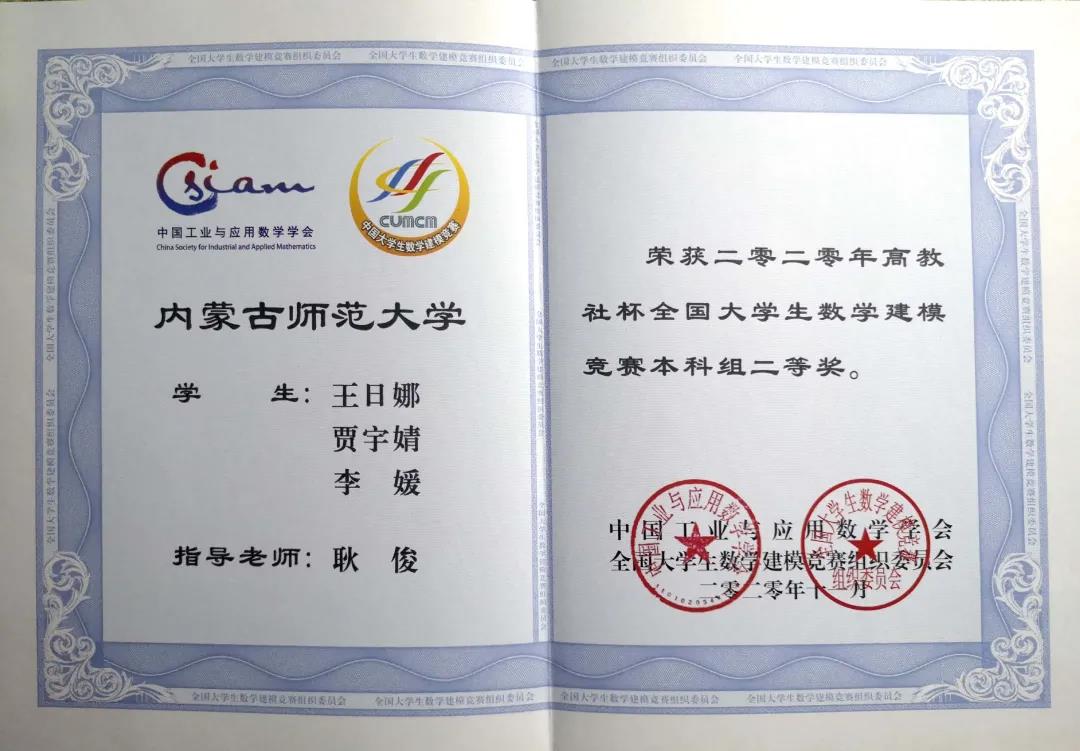 2020高教杯全国大学生数学建模竞赛开元官网包揽全国二等奖2项,赛区一等奖10项,二等奖12项,三等奖8项。