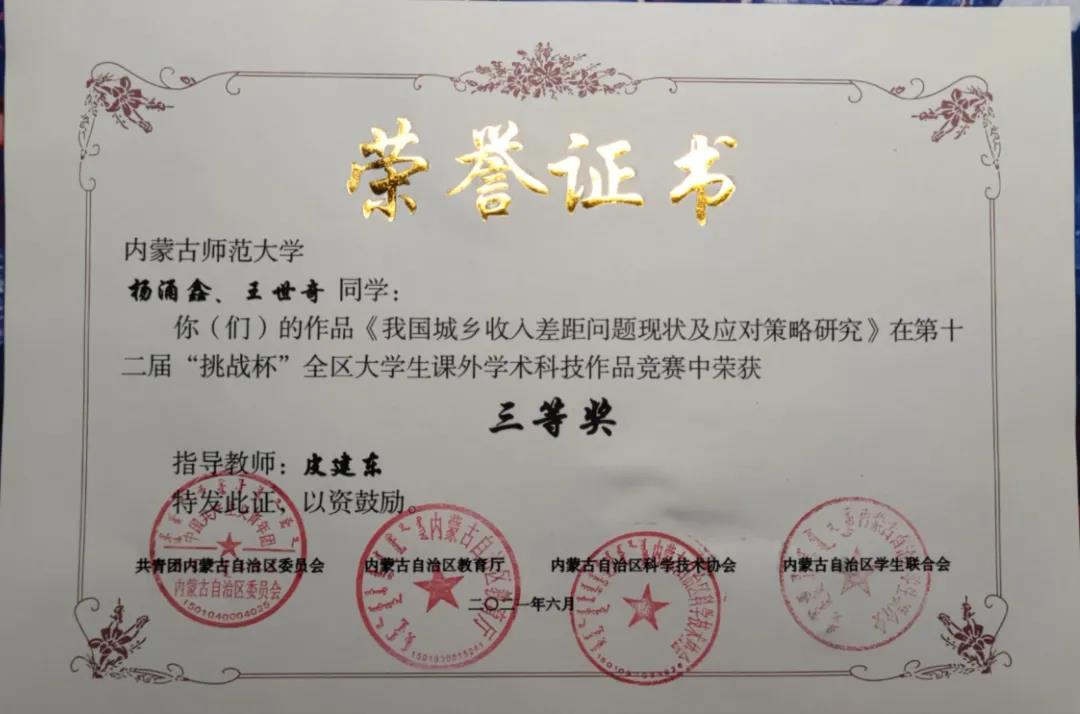 第十二届“挑战杯”全区大学生课外学术科技作品竞赛,开元官网同学取得二等奖一项,三等奖两项。
