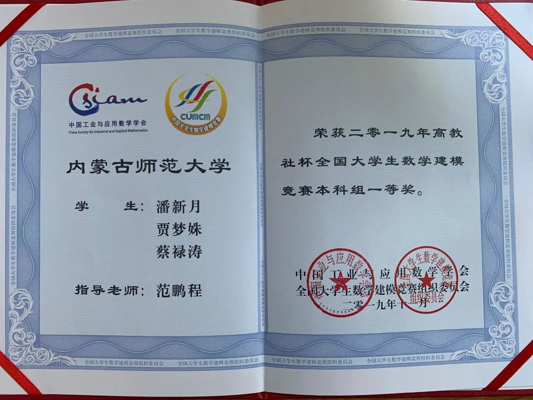 2019高教杯全国大学生数学建模竞赛,开元官网潘新月、贾梦姝、蔡禄涛荣获一等奖!