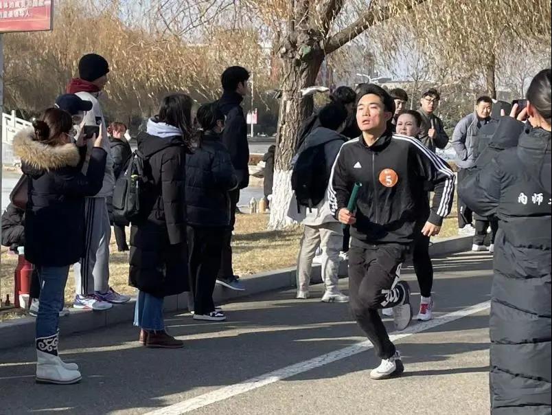 本次冬季越野赛以接力的方式绕师盛湖进行比赛。同学们在这寒风之中你追我赶,汗水滑落,浸湿衣裳,连空气中都充满了青春活力的跃动。