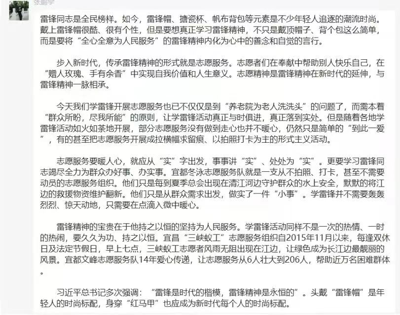在3月5日雷锋同志纪念日这一天,ky开元集团组织各班进行“雷锋精神大家谈”主题班会,旨在激发大学生学习雷锋精神、保卫雷锋精神的热情。