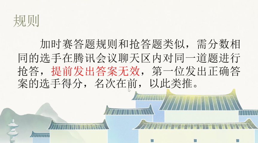 本次线上知识竞赛分为三个环节,分别为必答题环节、抢答题环节和加时赛环节,全面地考验了参赛选手们的对文学作品的知识储备量、反应能力以及临场的发挥。