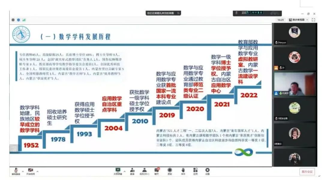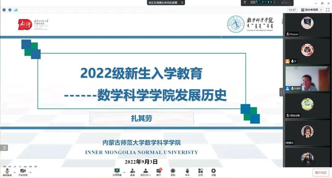 学院院长扎其劳教授首先向数科学子提问了三个问题, “ 你是谁?” “你从哪里来?”“ 你到哪里去?” 引发了学生们对人生目标与未来规划思考,然后扎其劳教授开始介绍了数科院的发展历史以及基本概况,包括本科教育、学院实践教学成绩、研究生教育、博士点申请、人才团队及获奖情况、人才培养情况、交流合作情况、主办学术会议及学术报告、数学学科发展历程等。