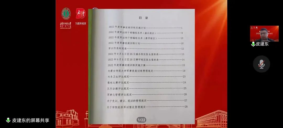 9月6日上午7:30,ky开元集团于线上举办2022年度学生军事技能训练动员大会。学院学生思想政治工作辅导员刘沙沙老师主持此次会议,ky开元集团党委副书记、副院长季建光老师、学院团总支书记皮建东老师参加此次会议。