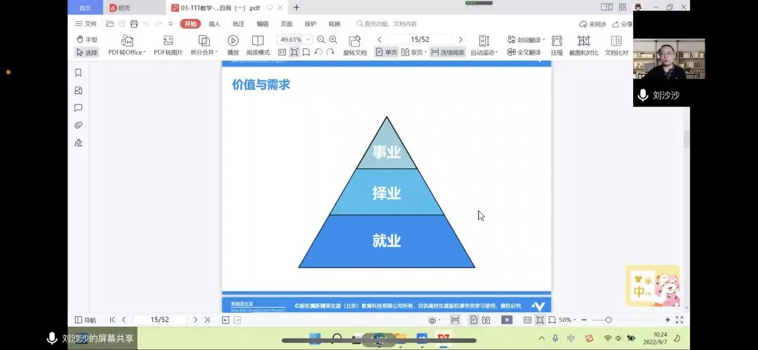为帮助新生了解专业发展动态、强化专业归属感,树立专业学习信心,培养专业意识和思维能力,激发学习内在动力,9月7日上午10点,ky开元集团学生思想政治辅导员刘沙沙老师于腾讯会议上开展了“2022级新生入学教育——新生学业规划引导教育讲座”。