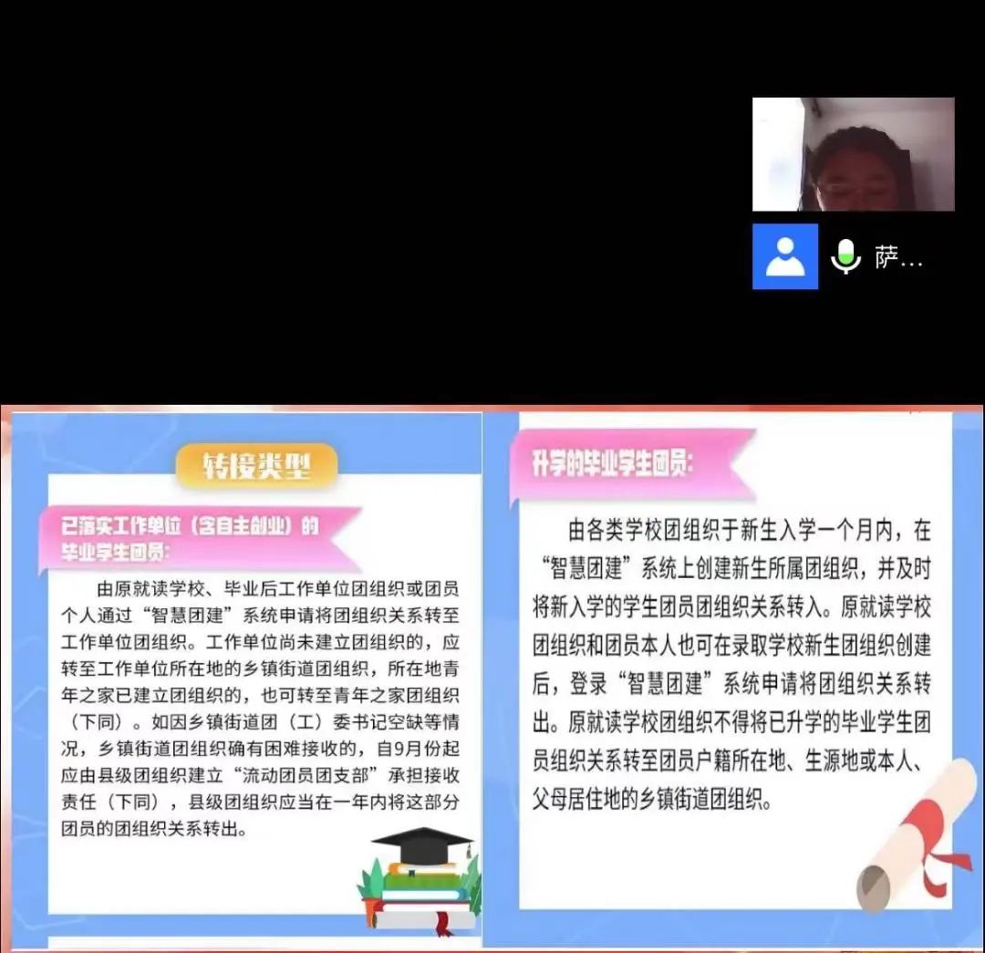 讲座上,萨如拉老师从智慧团建系统的转出讲起、转出两个方面详细的指导同学们进行团组织的转接。