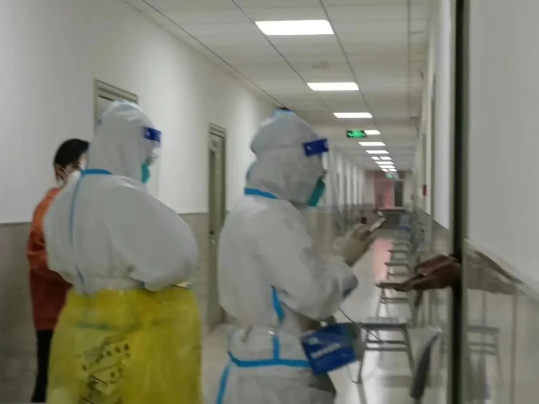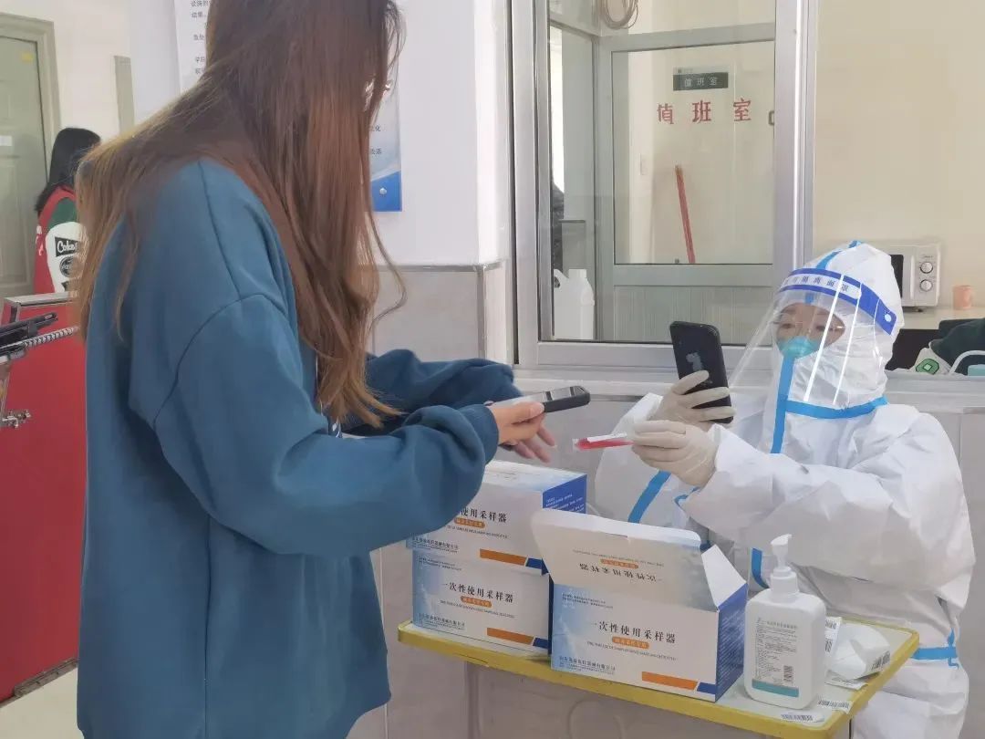 辅导员萨如拉和刘沙沙老师协助医护人员完成每日的核酸检测。