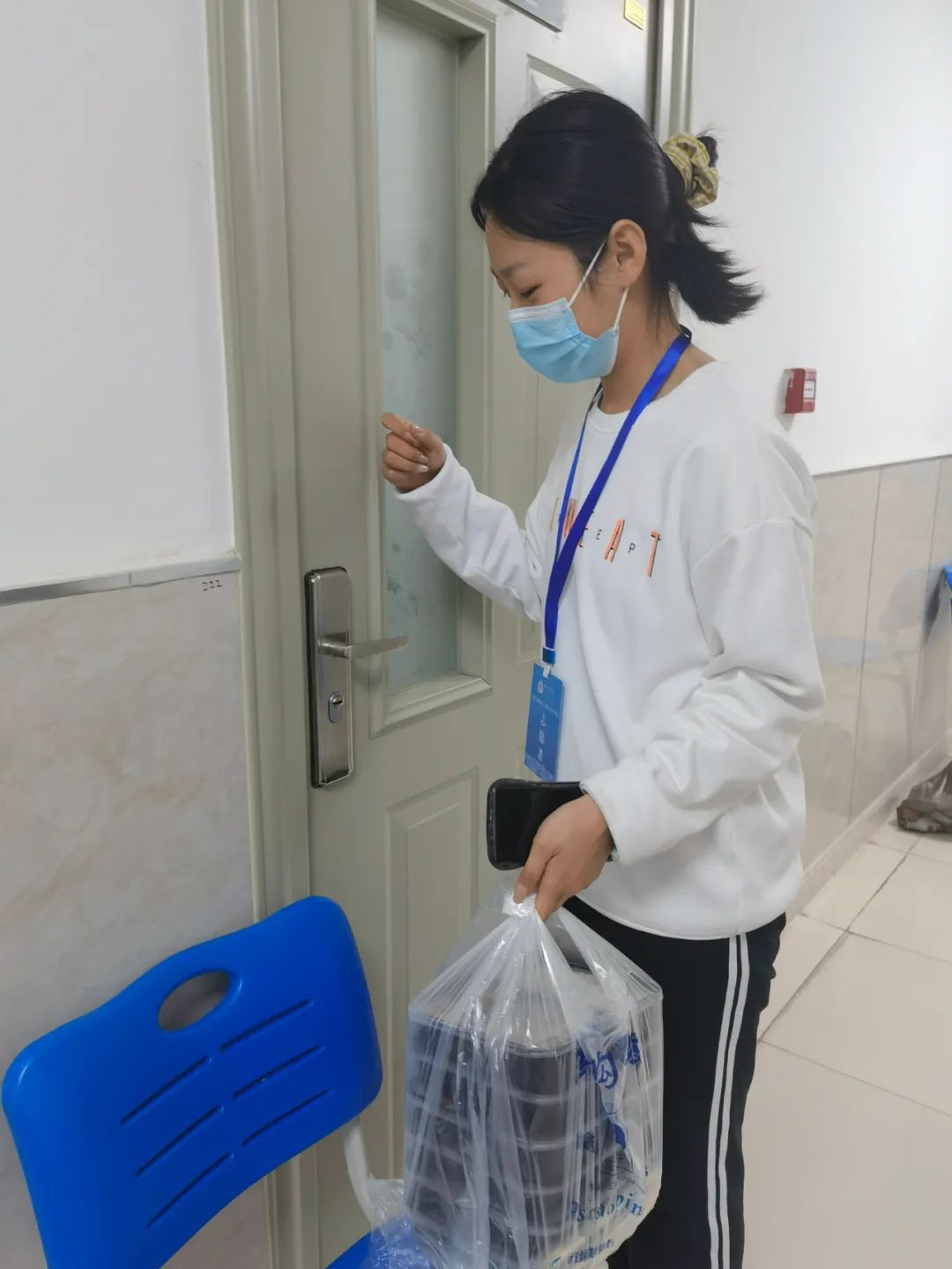 志愿者们协助维护核酸检测现场秩序,为同学们送饭、倒垃圾,为静默管理的顺利进行贡献出了自己的力量。