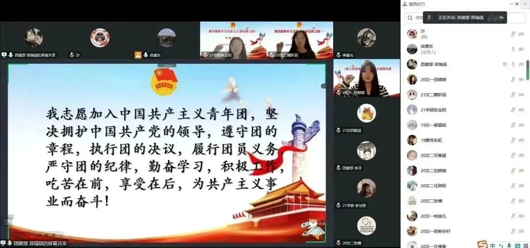学员代表田婷婷同学说:我成为青马班的一员后,必将珍惜此次学习机会,努力提升自己,使自己学有所获、学有所用、用有所果,争做最美青马人。
