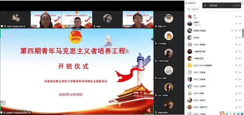 开班仪式由ky开元集团团总支书记皮建东老师主持,党委副书记、副院长季建光老师,学院学就办副主任刘沙沙老师,学院辅导员萨如拉老师出席,多名志愿者服务队干部和优秀团员作为青马班学员参加,第四期青马班为期两周的学习自此开始。