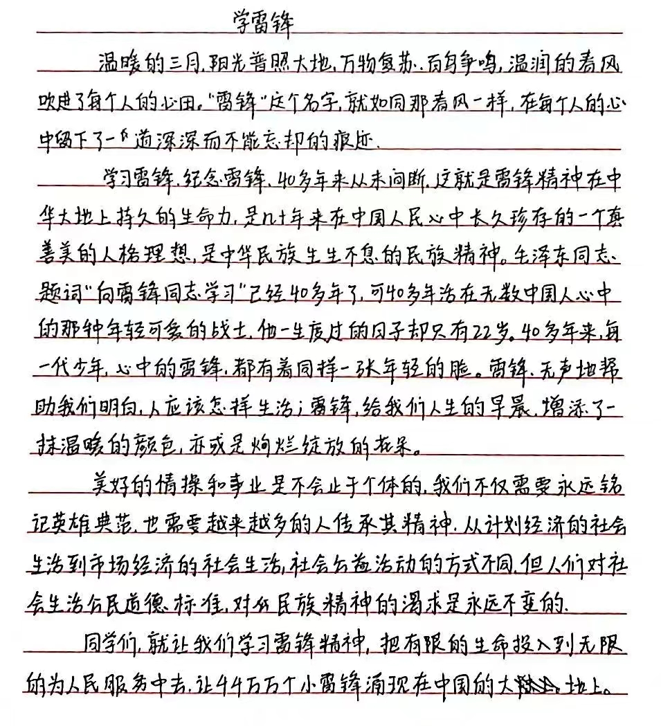 为进一步学习和弘扬雷锋精神,形成“人人学雷锋、时时有雷锋、处处见雷锋”的良好氛围,扎实有效推进学生思想道德教育,3月5日,ky开元集团举办学雷锋纪念日主题征文活动。