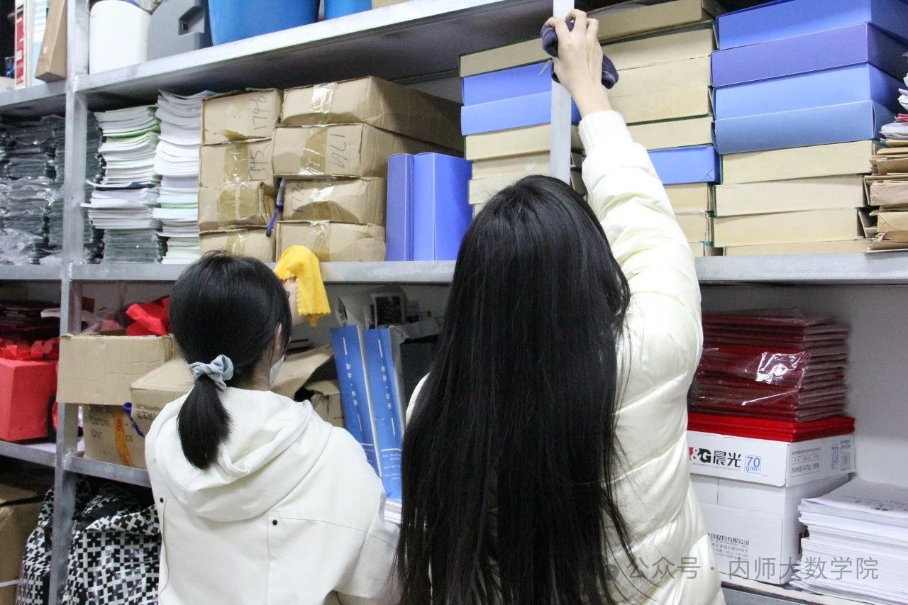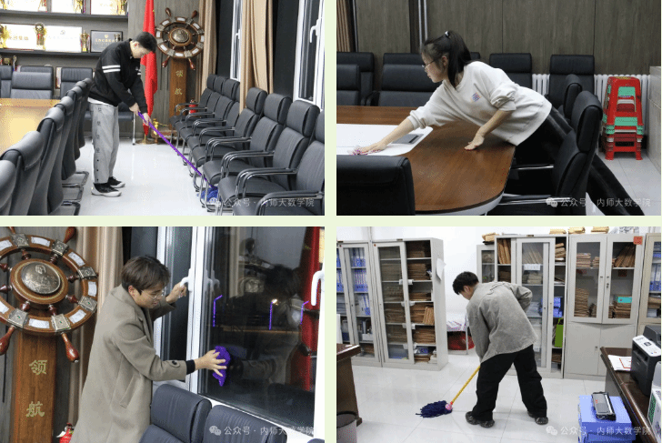 大家分工明确、职责清晰,默契协作,全面打扫了办公室与会议室。志愿者们不仅认真细致地对仓库内物品进行了分类整理与妥善放置,还在清扫过程中仔细检查了电器设备、插座等,及时排除了安全隐患,为营造安全、整洁的校园环境贡献了力量。