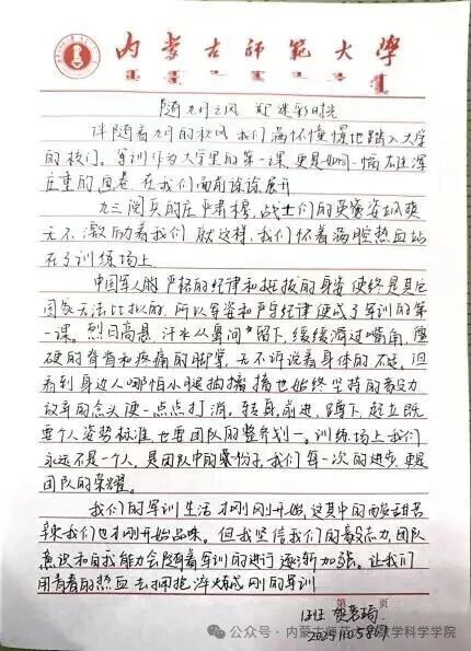 纸短情长,感悟仍在延续。愿同学们继续带着这份对军训的真切体会,在余下的训练里收获更多成长,让这些手写的心得,成为日后回望迷彩青春时,最温暖、最有力的回忆。