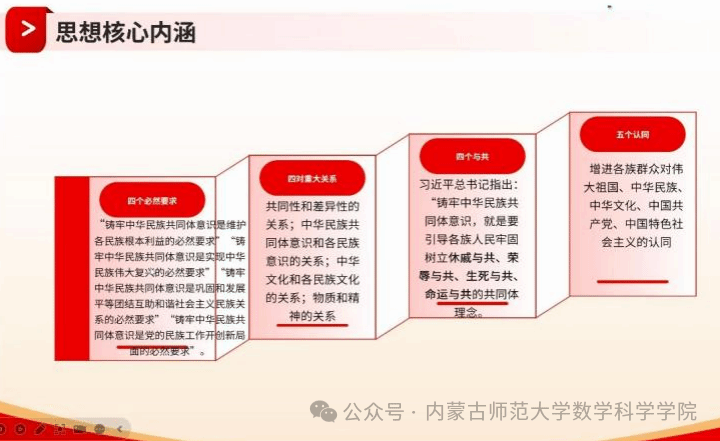 学院组织各班级团支部深入学习以“十二个必须”为核心要义的习近平总书记关于加强和改进民族工作的重要思想,并着重学习“四个必然要求”“四对重大关系”“四个与共”“五个共同”“五个认同”等核心内涵。通过学习活动,引导各族同学深刻理解民族团结的重要性,积极投身中华民族共同体建设。