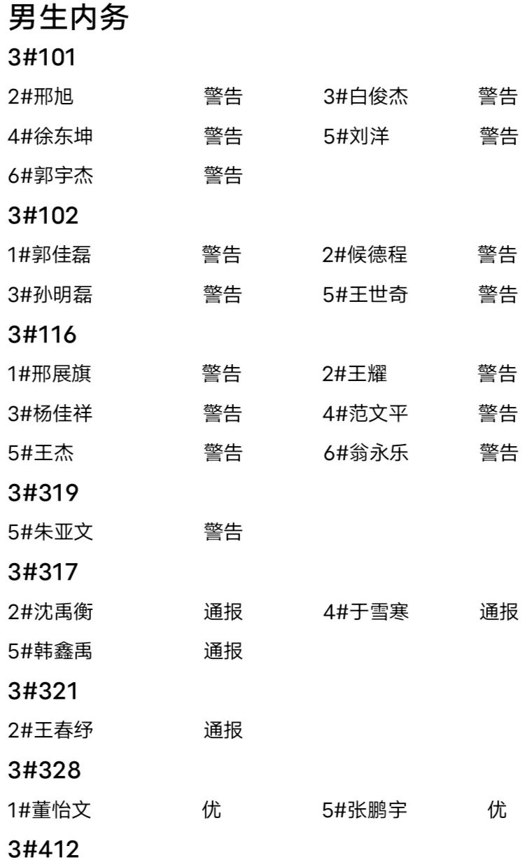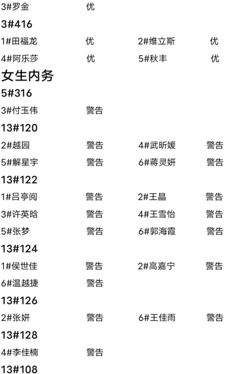 第十三周内务情况