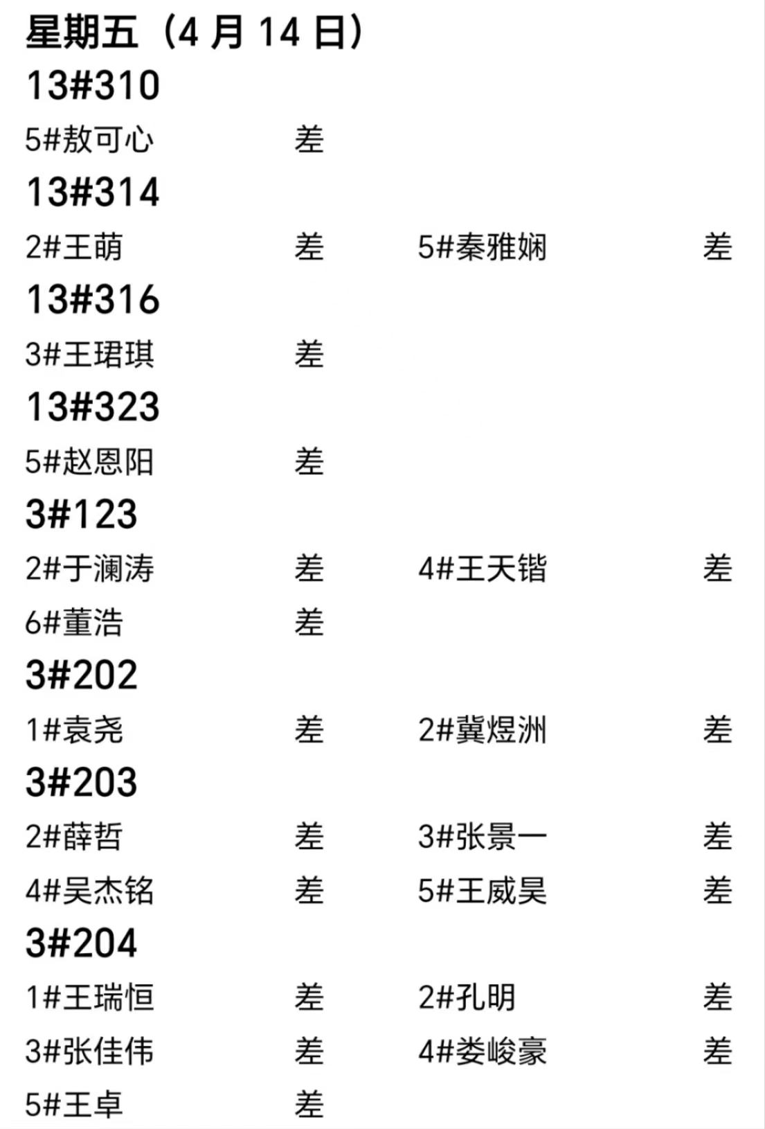 第八周内务情况