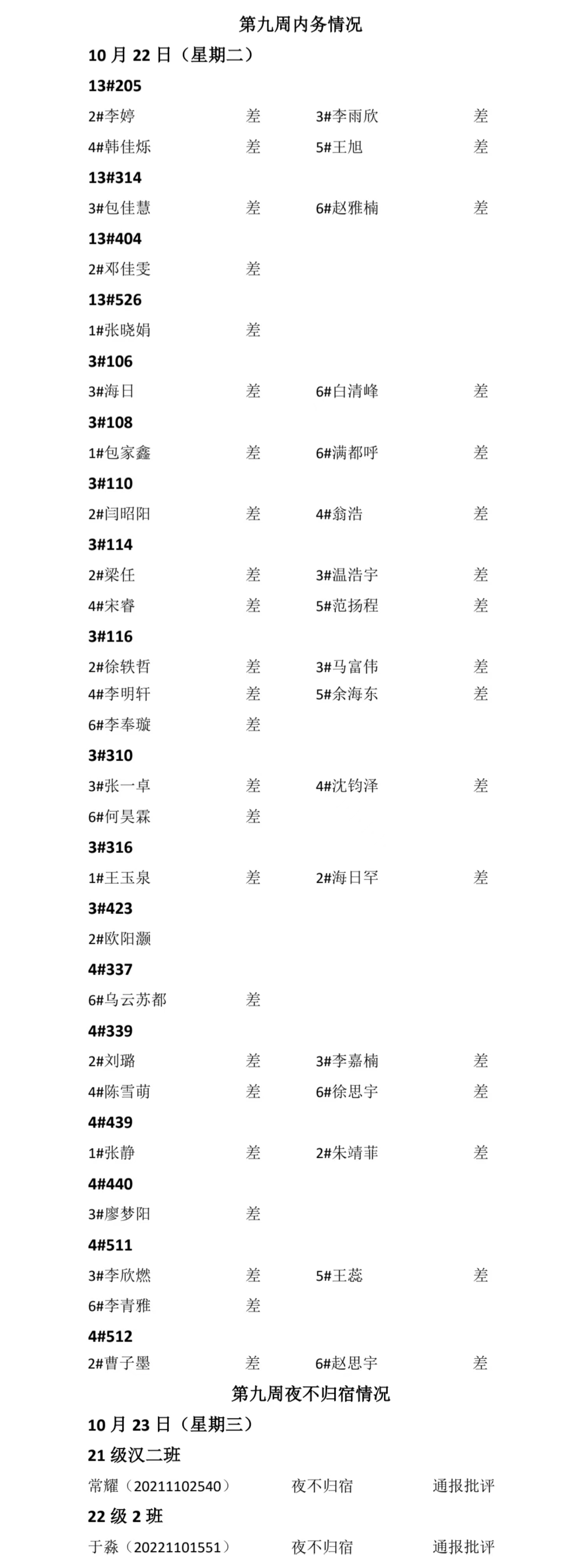 ky开元集团2024——2025年度第一学期第九周通报情况