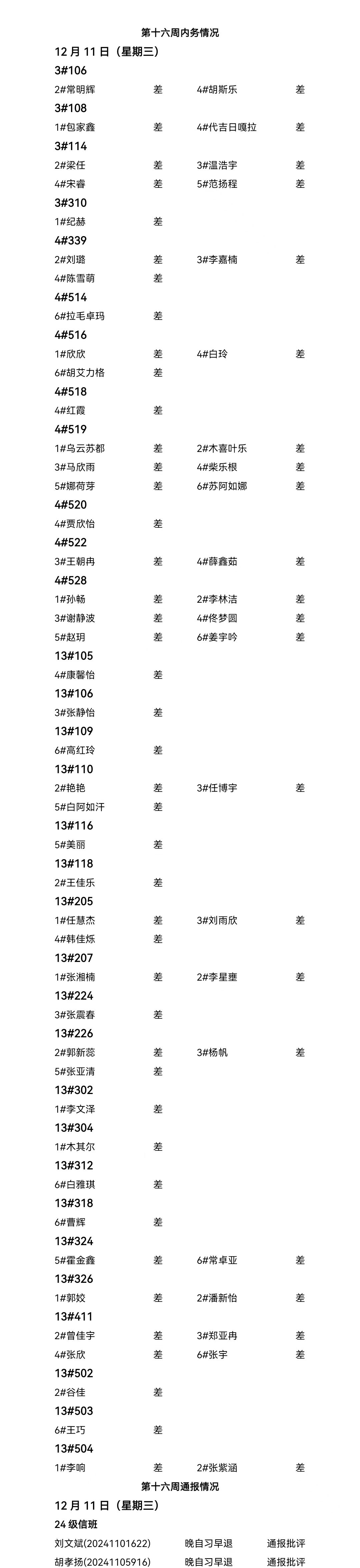 ky开元集团2024——2025年度第一学期第十六周通报情况