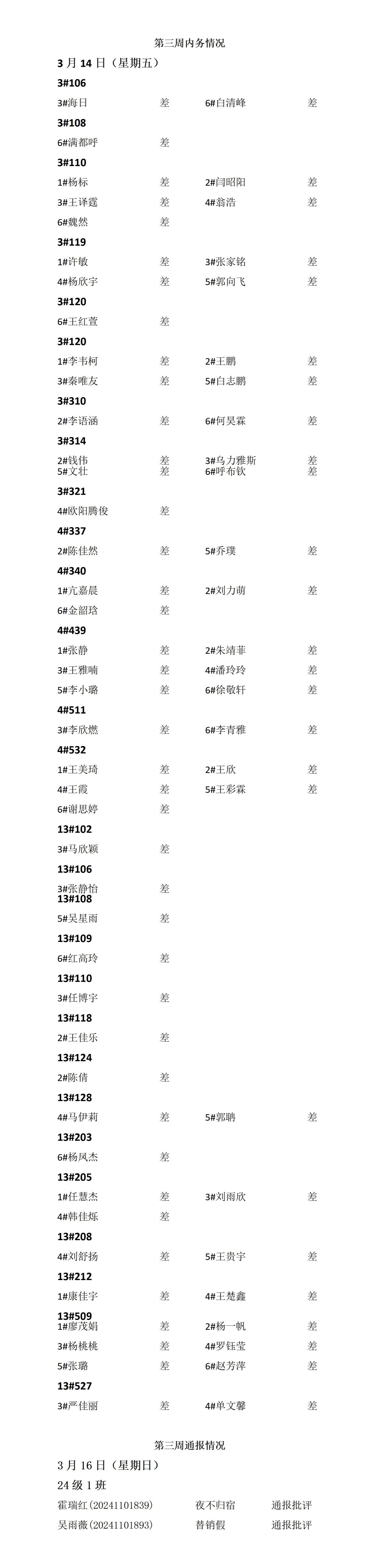 ky开元集团2024——2025年度第二学期第三周通报情况