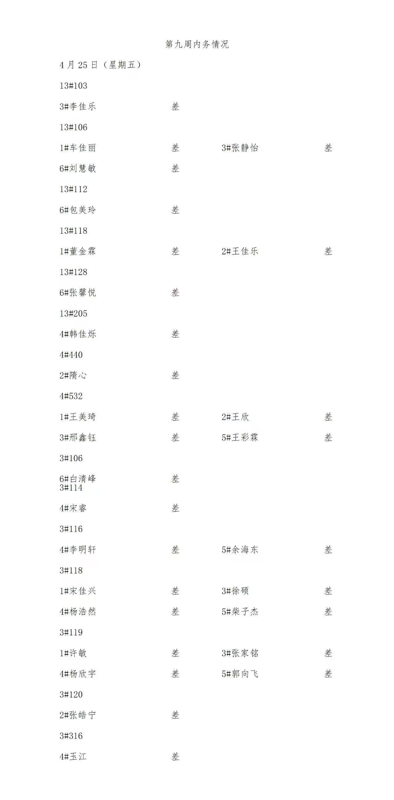ky开元集团2024——2025年度第二学期第九周通报情况