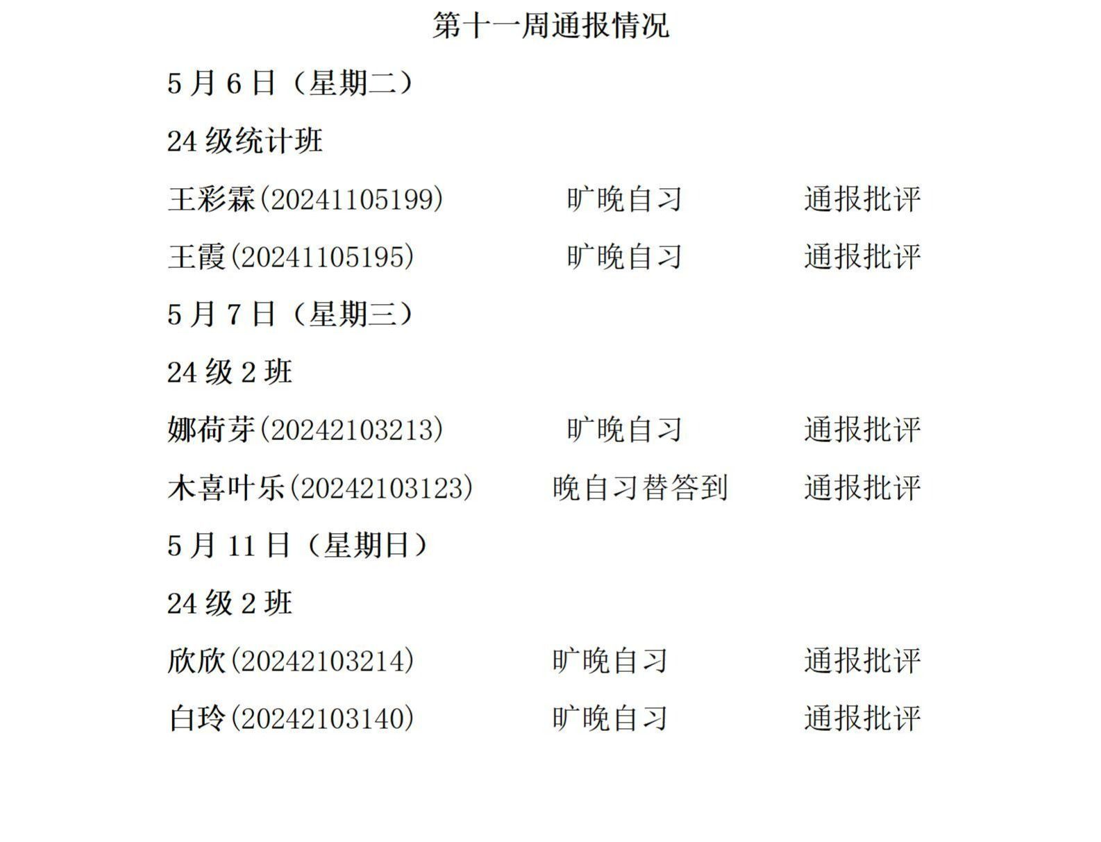 ky开元集团2024——2025年度第二学期第十一周通报情况