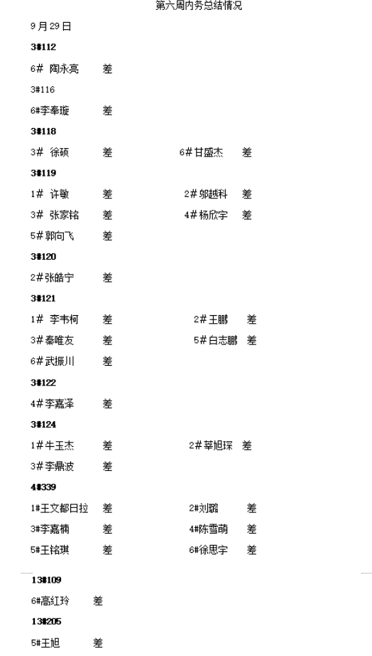 ky开元集团2025——2026年度第一学期第六周内务情况