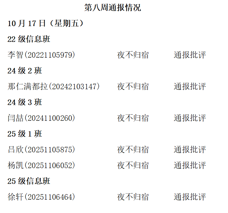 ky开元集团2025——2026年度第一学期第八周通报情况
