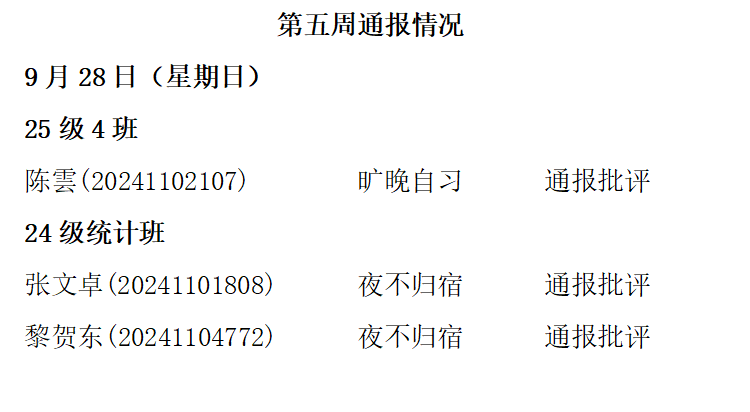 ky开元集团2025——2026年度第一学期第五周通报情况