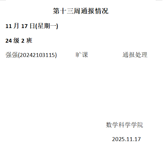 ky开元集团2025——2026年度第一学期第十三周通报情况