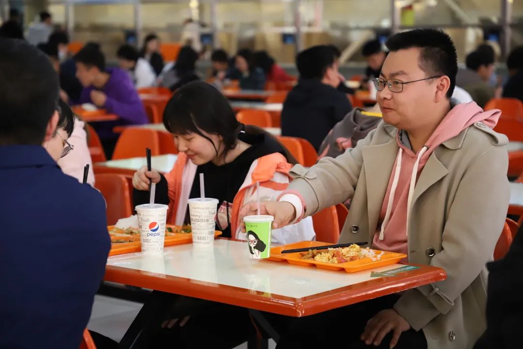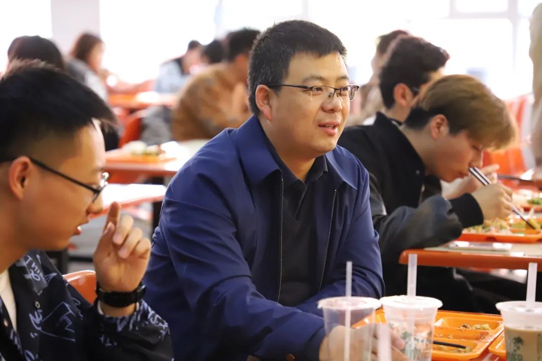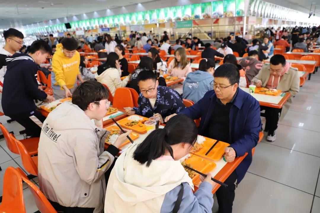2021年4月13日下午,皮建东老师与开元官网学生思想政治工作辅导员刘勇波老师与同学们一同走进食堂。