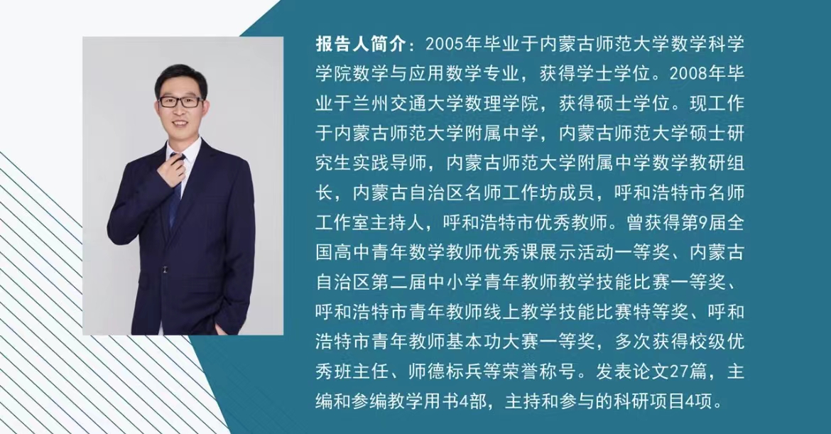 在ky开元集团70周年校庆的热烈气氛下,为进一步提升开元官网本科生、研究生教学能力,开拓师范生备课的眼界,以优促优,鼓励开元官网在校生向优秀校友学习请教,由内蒙古自治区应用数学中心联合ky开元集团ky开元集团举办的系列讲座——“用艺术的眼光备课”于2022年5月31日(星期二)19:30—22:00在线上开展。