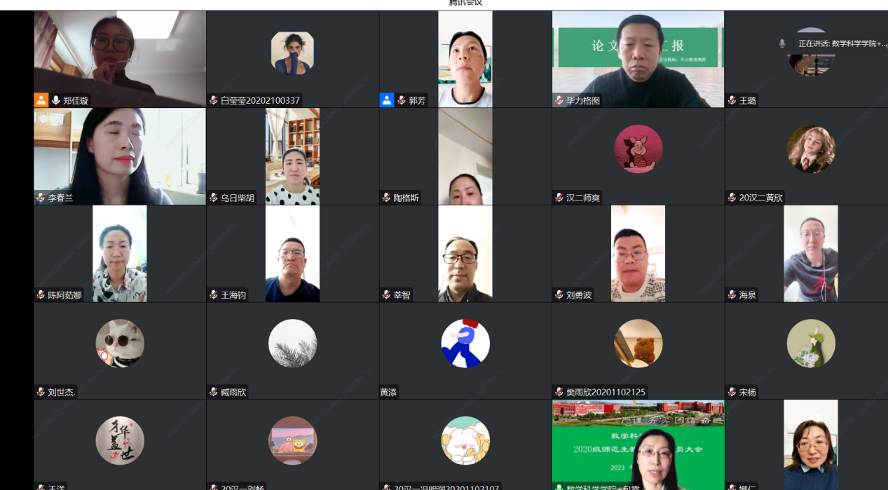 会议首先由李春兰老师为同学们详细介绍了教育见习、实习、研习过程中相应的工作内容,包括日常打卡,填写日/月/周报,做好听课记录和班主任计划等,要求同学们认真备课,做好主题班会设计,多和校内外指导老师交流,争取在实习期内多登台讲课,为日后融入工作岗位打好基础。此外,数学系主任毕力格图老师也为同学们提供了一些建议,建议同学们作为一名教师,要多关注学生们在课堂上的参与程度,提前多查课前、课堂和课后评价相关文献资料,熟练用好信息化教学手段。数学系副主任乌日柴胡老师也进行了补充,建议同学们带着问题去实践,观察校外指导老师是如何教学,如何解决问题的。会议过程中,参会的同学们与指导老师们也积极地进行交流和讨论,帮助同学们解决一些实际的问题。