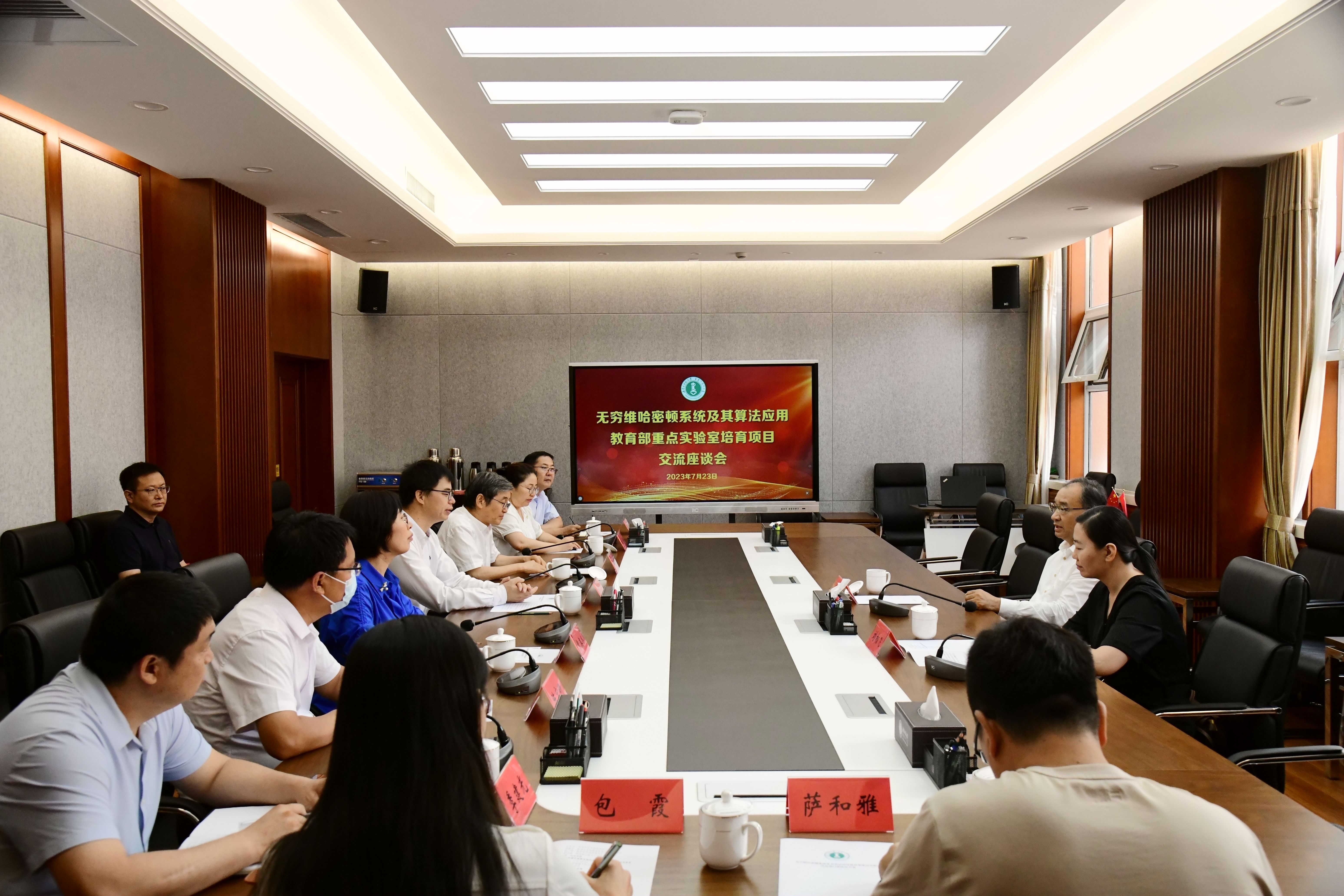 7月23日上午,教育部科技司一级巡视员高润生来我校调研无穷维哈密顿系统及其算法应用教育部重点实验室(以下简称教育部重点实验室),内蒙古自治区教育厅科学技术与信息化处处长刘相飞陪同调研。学校党委副书记校长张军、教育部重点实验室主任阿拉坦仓、副校长贾美林、科技处和教育部重点实验室相关人员参加了调研活动。本次调研分为座谈会和实地考察两个阶段进行。在盛乐校区行政楼206会议室召开了座谈会。