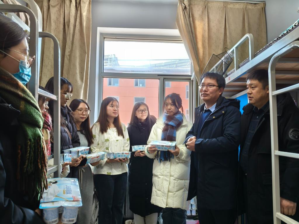 本次走访中,学院还给所有假期留宿学生发放了酸奶,让同学们感受到了冬日的一缕温暖。