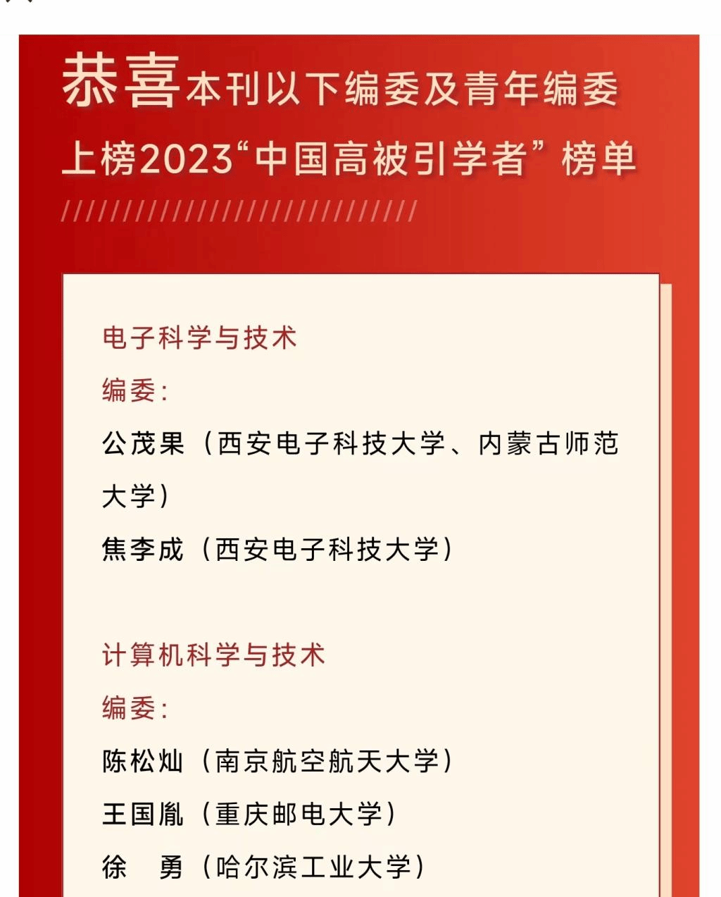 2023“中国高被引学者”上榜共计5801人,来自496所高校、企业及科研机构,覆盖了教育部10个学科领域、84个一级学科。ky开元集团副校长公茂果教授上磅2023“中国高被引学者”榜单。