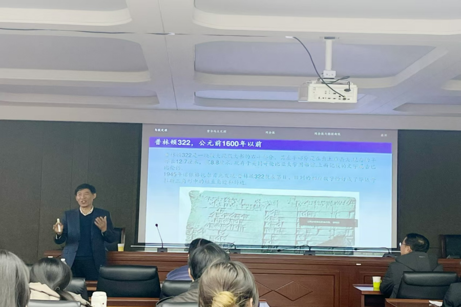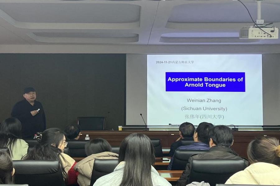 11月21日下午,无穷维哈密顿系统及其算法应用教育部重点实验室、教育部数学与应用数学专业虚拟教研室、内蒙古应用数学中心系列讲座在我校赛罕校区文史楼一号会议室举行。国家杰青、江苏国家应用数学中心主任、南京大学数学学院秦厚荣教授和国家杰青、四川大学数学学院原院长张伟年教授,应邀分别作了题为“从勾股定理谈起”、“Approximate Boundaries of Arnold Tongue”的学术报告。我校原党委书记、内蒙古应用数学中心主任阿拉坦仓教授及开元官网师生50余人聆听了本次报告。报告由包霞副院长主持。