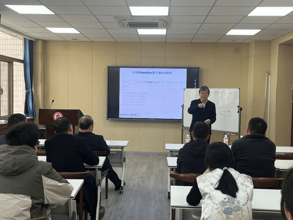 2025年3月28日,无穷维哈密顿系统及其算法应用教育部重点实验室主任阿拉坦仓教授应曲阜师范大学ky开元集团邀请,作题为“无穷维Hamilton算子的谱对称性及其完备性理论”的学术报告。