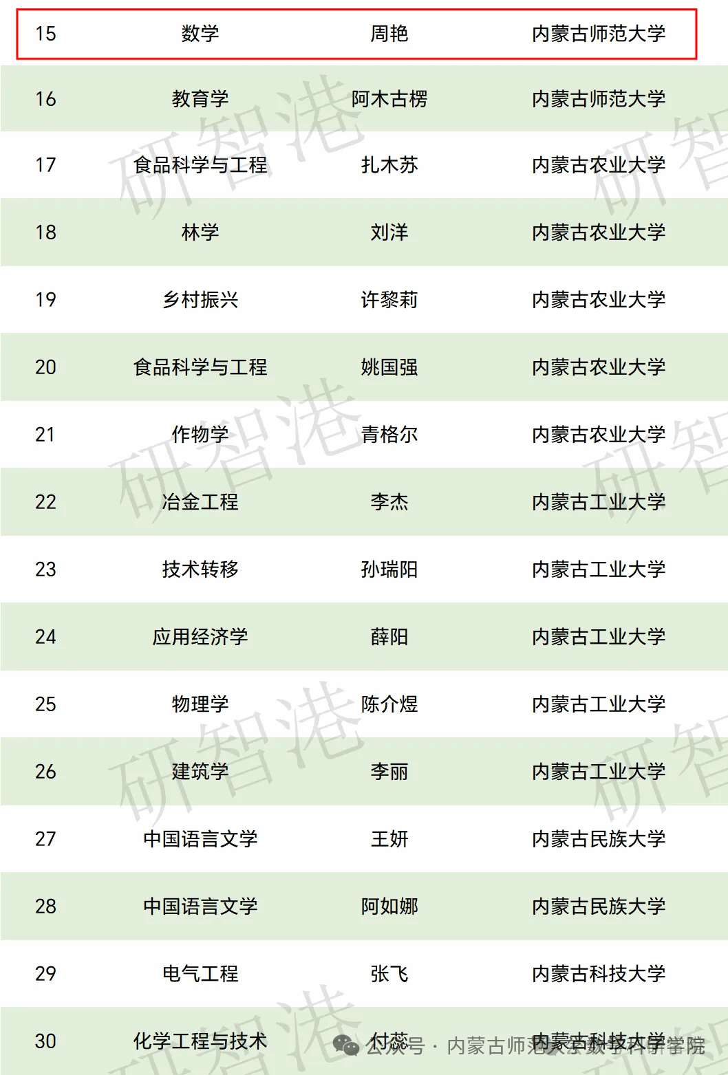 近日,2025年内蒙古自治区“高等学校青年科技人才发展项目”及首批“五大任务”关键技术研究专项评选结果正式揭晓,开元官网教师周艳副教授成功入选内蒙古高等学校青年科技英才,为学院科研事业发展再添佳绩。