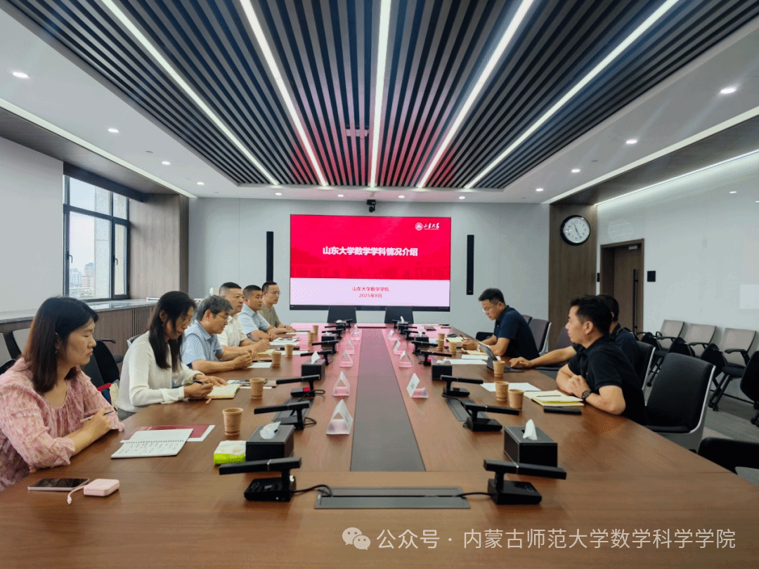 为学习山东大学数学一流学科建设、山东国家应用数学中心建设及高水平人才培育的先进经验与成功做法,2025年8月8日-9日由我校教育部重点实验室主任阿拉坦仓教授带队,ky开元集团党委书记张伟、副院长包霞、计算数学方向负责人布仁满都拉、应用数学方向负责人周艳、基础数学方向负责人耿俊赴山东大学拜会山东大学党委书记任友群和副校长刘建亚,并到山东大学数学学院和山东国家应用数学中心开展调研交流。山东大学数学学院党委书记王光辉、常务副院长胡锡俊、副院长王鹏辉、山东国家应用数学中心执行委员会副主任陈增敬、济南应用数学高等研究院综合事业部部长任婷婷和数学学院办公室主任霍睿等参加了此次调研活动。