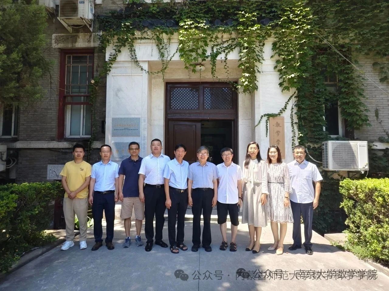 8月15日,在我校原党委书记、教育部重点实验室主任阿拉坦仓教授的带领下,学院党委书记张伟、副院长包霞率领团队,赴南京大学数学学院开展调研交流。调研团成员包括计算数学方向负责人布仁满都拉、应用数学方向负责人周艳、基础数学方向负责人耿俊。南京大学数学学院党委书记刘公祥、江苏国家应用数学中心主任秦厚荣,优秀教师代表邓卫兵、青年教师聂梓伟、研究生秘书刘柳等热情接待了调研团一行。