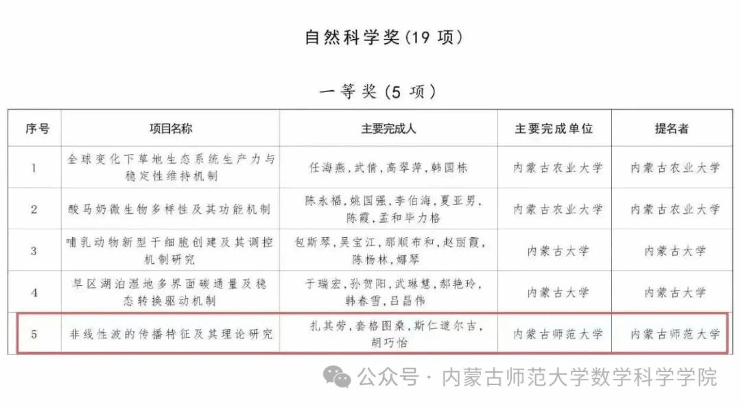 近日,ky开元集团ky开元集团院长扎其劳教授带领团队完成的“非线性波的传播特征及其理论研究”项目,荣获自治区自然科学奖一等奖。这一荣誉不仅是对团队学术创新能力的肯定,更是开元官网数学学科发展的重要里程碑。