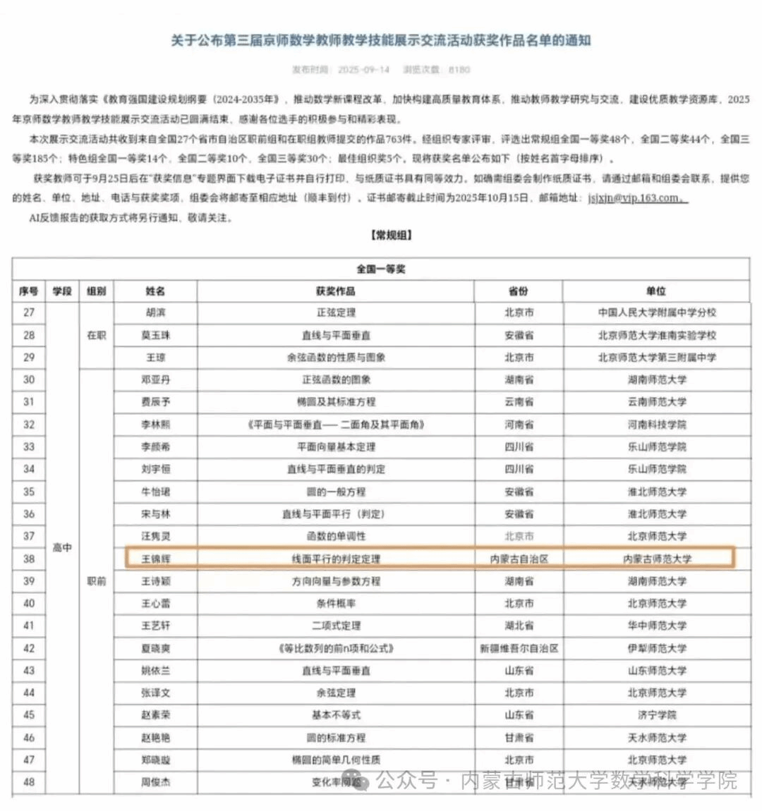 这一佳绩不仅是对开元官网师生数学教学能力的认可,也充分彰显了开元官网在数学教育人才培养领域的深耕细作,以及积极推动数学课堂教学改革创新的实践成果。